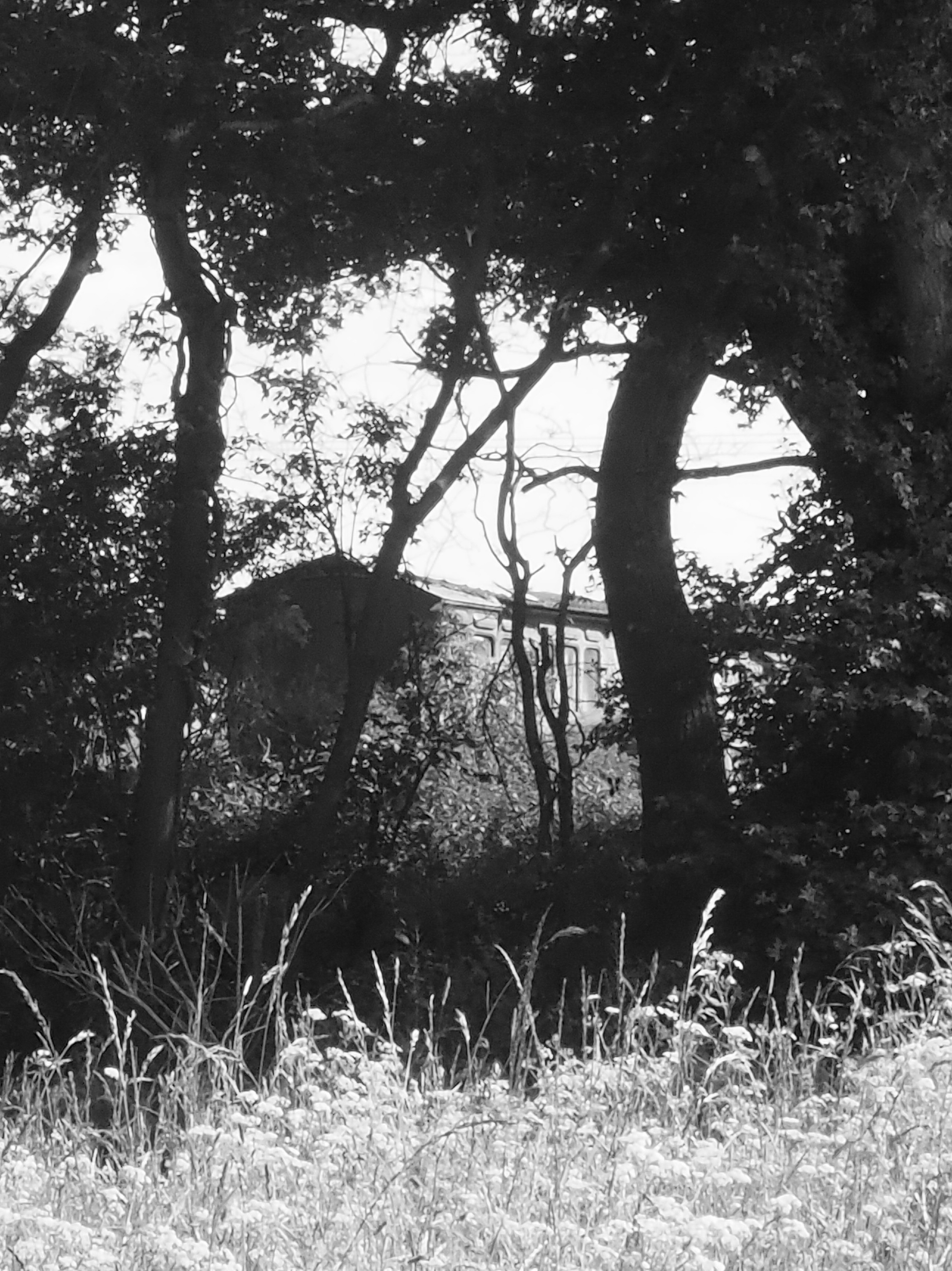 An old farm stands back from a grassy patch, dominated by a magnificent ash tree – long may it survive ash die back disease. Apart from that, there are some stables and a pre-fabricated house with an old railway carriage for an outbuilding.