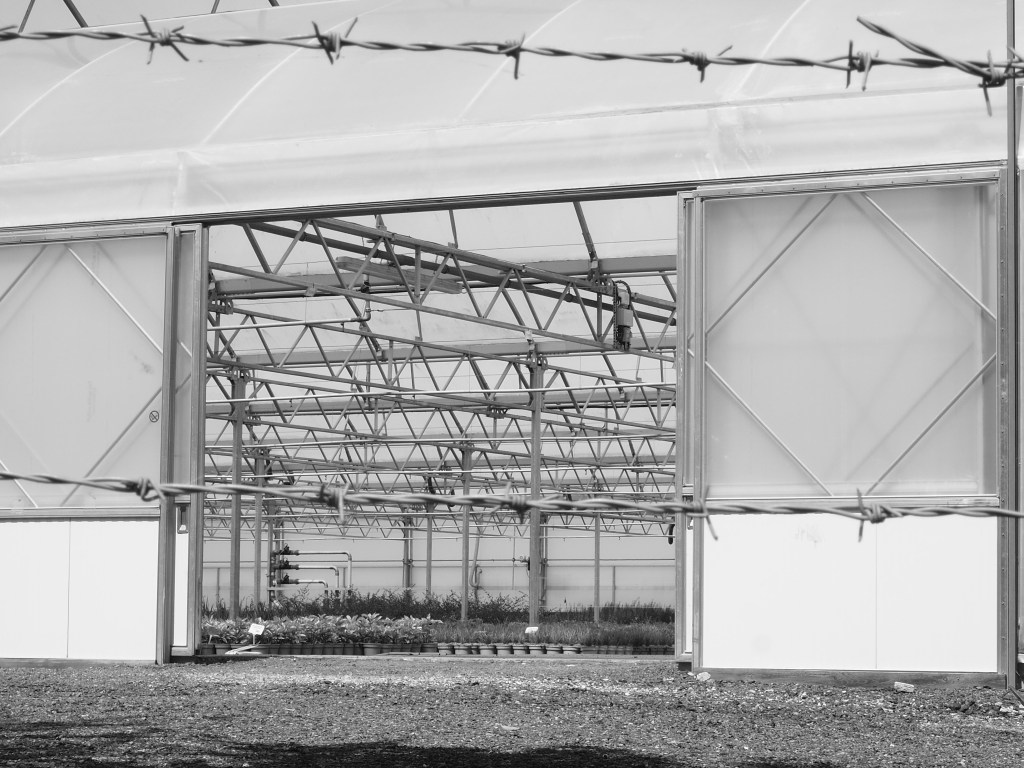We turned off Cole Green Way and made our way over ripe fields of grain to Birch Green, which has a number of houses built in the last century and a few older cottages. From there we cut through to the smaller settlement at Staines Green. Although the two are distinct and there is no ribbon development between them, they are umbilically linked by the grounds of a plant nursery. The footpath has garden plants along one side while the growing sheds on the other are more like an industrial warehouse complex.