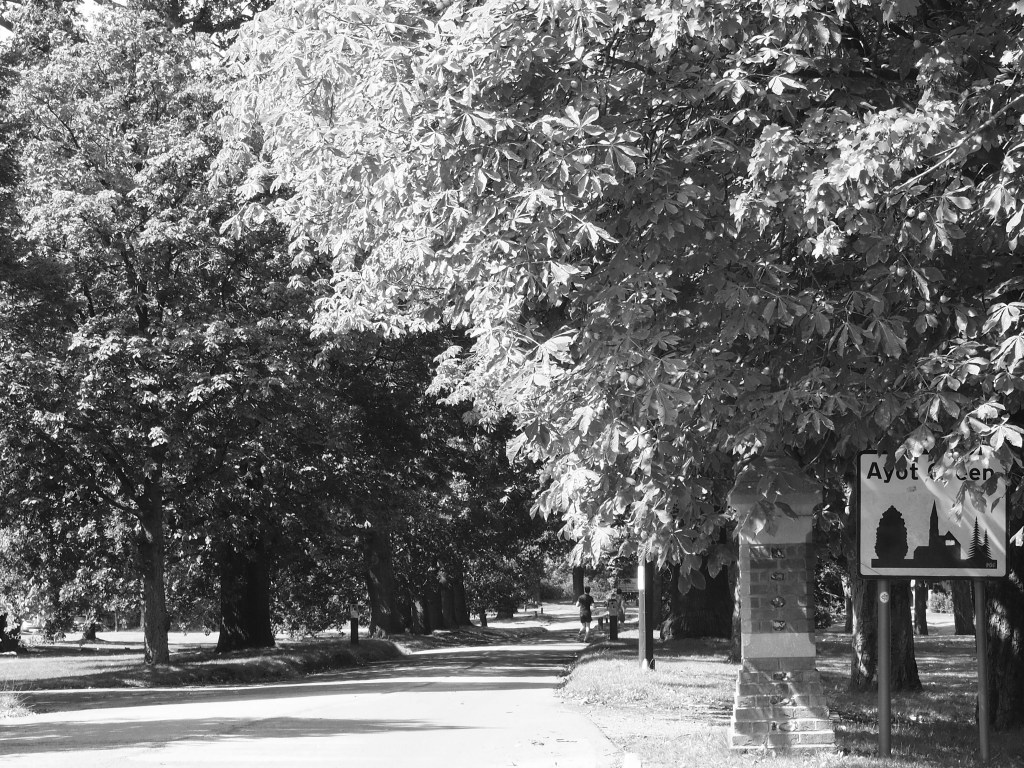 This venerable old gentleman on his walking frame and his fellow oaks and Horse Chestnut cousins line the two lanes passing through Ayot Green, their shadows dappling the tarmac.
