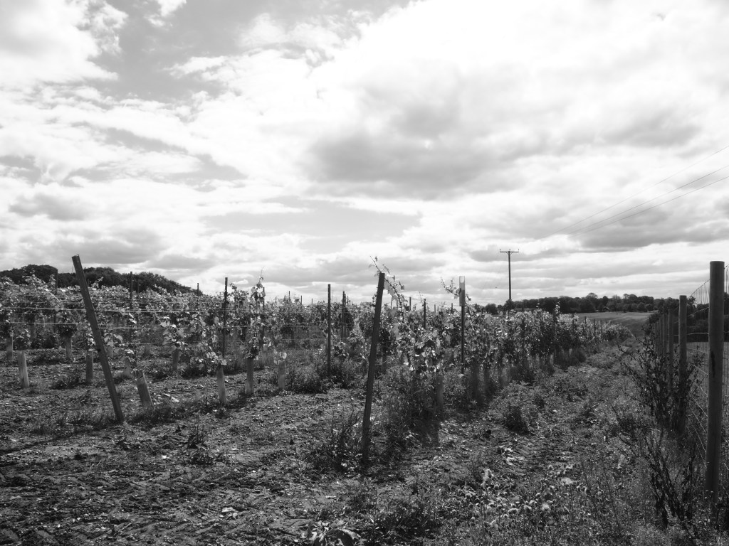The houses sit among trees along the arms of the Y formed by two of the approaching lanes. On the other side of the southern lane is a narrow wood beyond which lies Pig’s Green, land that is now a vineyard.