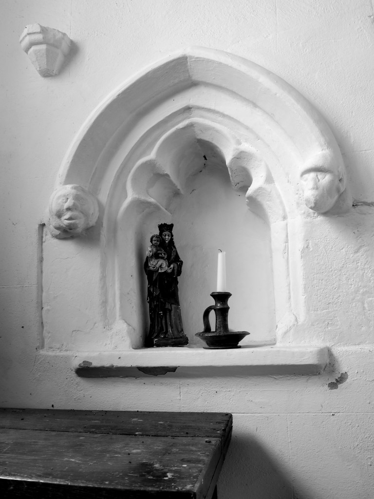 Also of note is the piscina in the side chapel. The heads are clearly not of Europeans, suggesting that it was not only people who lived in ports and larger towns who came into contact with people from the wider world.
