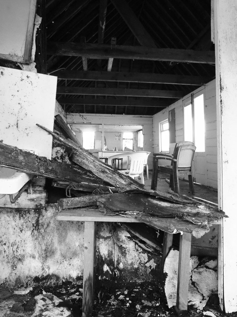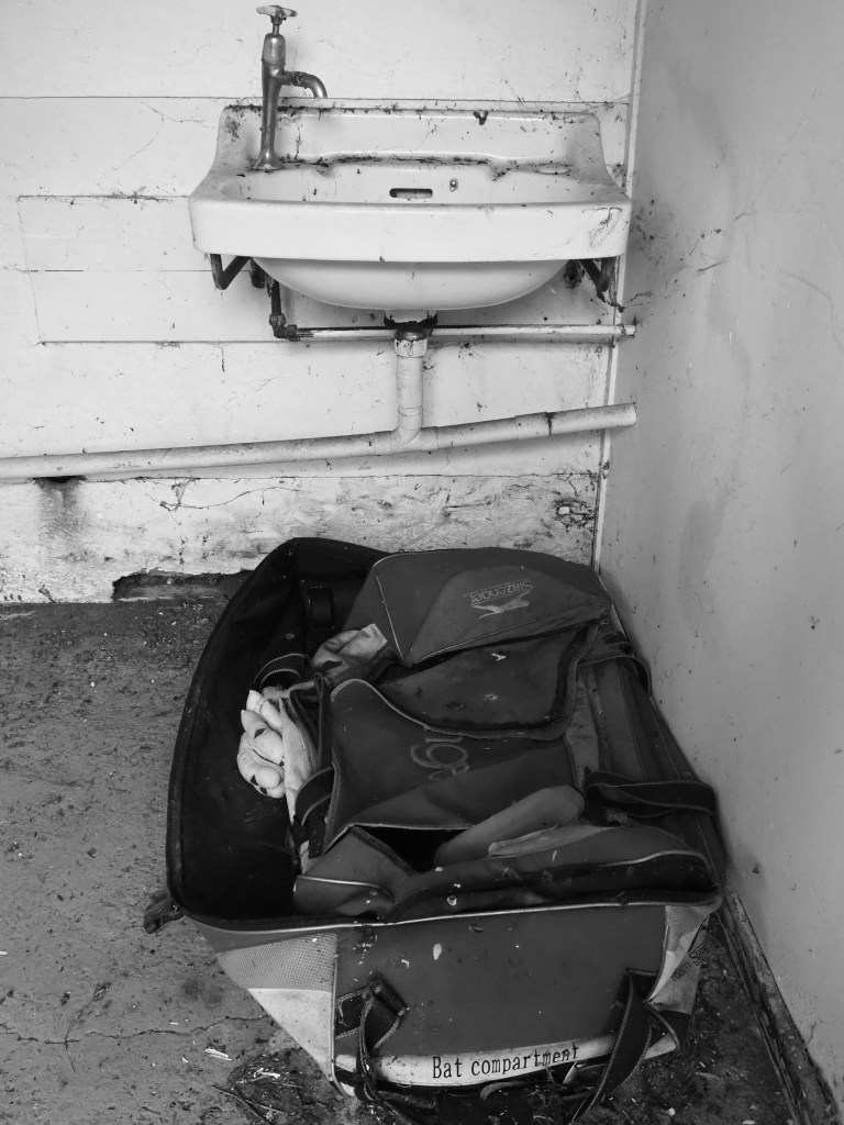 A derelict cricket pavilion and overgrown pitch deep in the Hertfordshire countryside. Abandoned, fading echoes of tea-time cuppas and pints, and tall stories. Dim shadows of players and onlookers. All out for… ever.