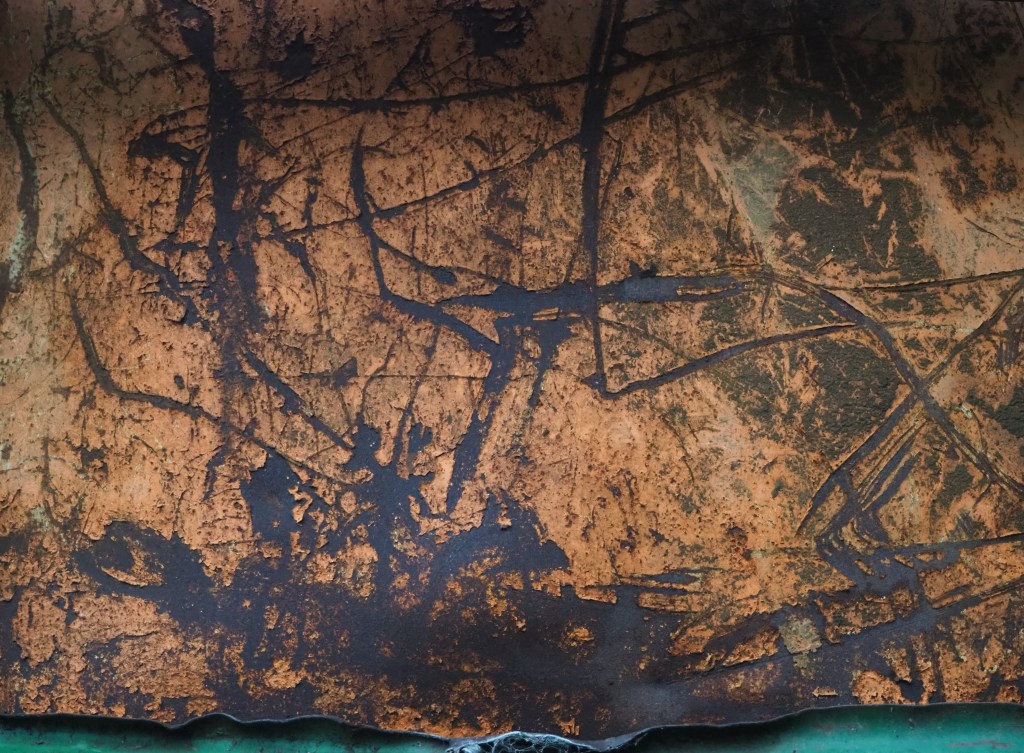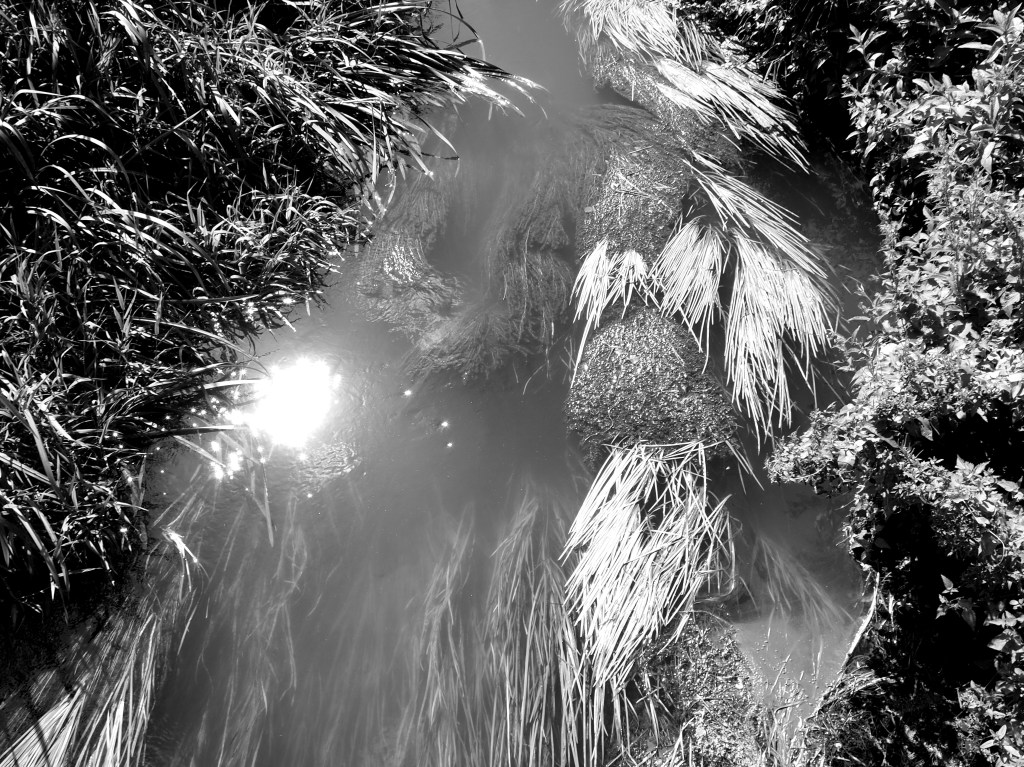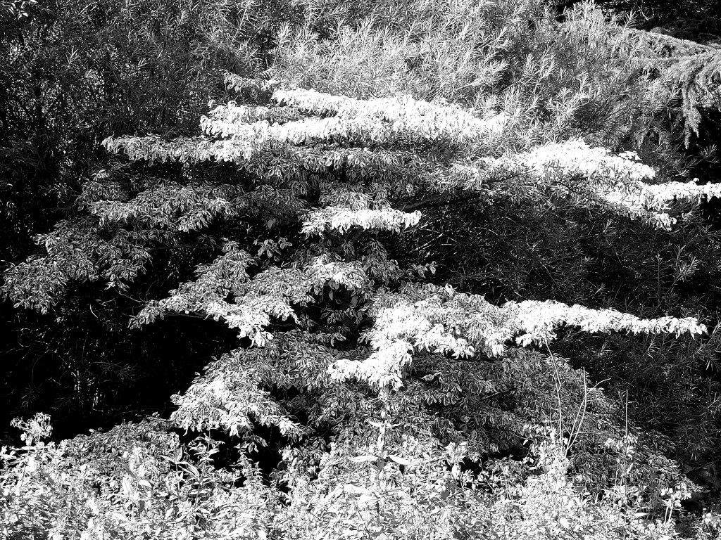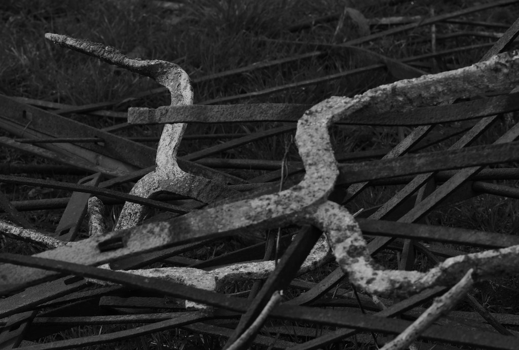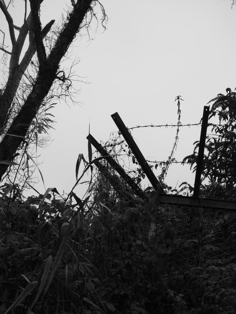 The patch was cleared to put up the commercial greenhouses. Decades later, the greenhouses failed and spiralled into disrepair. The vegetation is reasserting its claim. For now, there is stasis with neither the manmade structure nor nature prevailing. At this moment – which may end with Spring growth – the measured angles and straight lines of the collapsing artifice are interwoven with an unruly growth decided by wind, rain and sun, sometimes complementing, sometimes clashing.