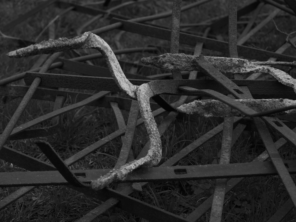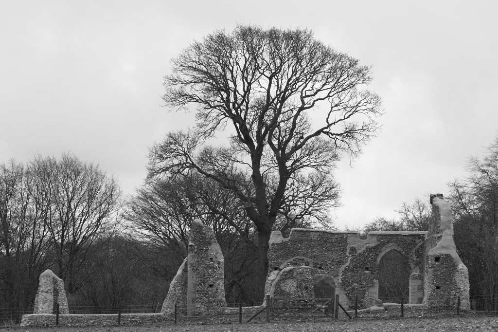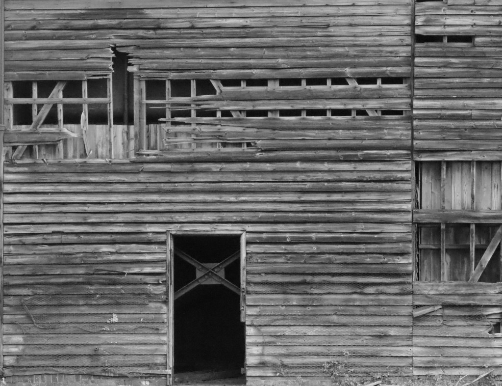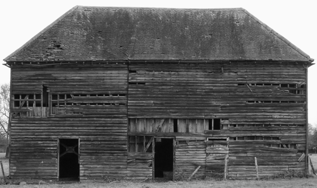 In fact, it’s not a barn, rather an old waterworks building. It’s frequently photographed, and for good reason. There is little surrounding clutter in a field on high ground. The clapperboard construction gives tones and contrasts and definition heightened by its dereliction. I think these come out best in monochrome although its autumn colours are enchanting.