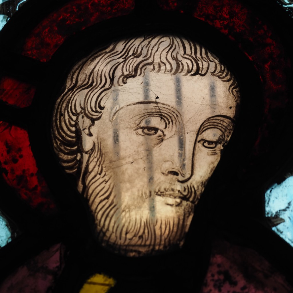 High up in the triforium is a 15th century depiction of St James, again depicted with a face of simplicity and depth but all the more wonderful for being scarcely perceptible to the naked eye, this photograph having been taken with a modest zoom lens and enlarged on editing.