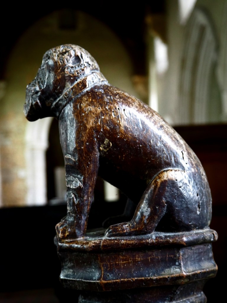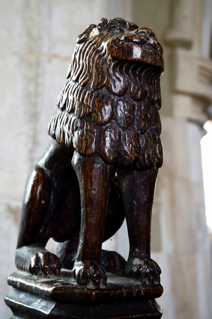Still at Edworth, finials on the 15th century pews depict a lion and a baboon, animals never seen by the craftsmen who carved them.