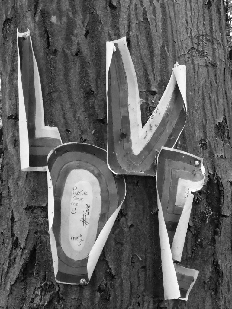 The pandemic lock down threw a bucket of cold water over VE Day celebrations but there was a flurry of flag waving, flying and – as above – chalking. Politicians tried to invoke the war time spirit in the battle against the virus, a sorry effort by a sorry bunch. I can’t decide whether the proliferation of Union Jacks and flags of St George complemented, contrasted with, or contradicted the ethereal (pagan?) spirit of the invocations that appeared on trees around our towns and countryside as people looked for ways to cope with the impact of the disease.