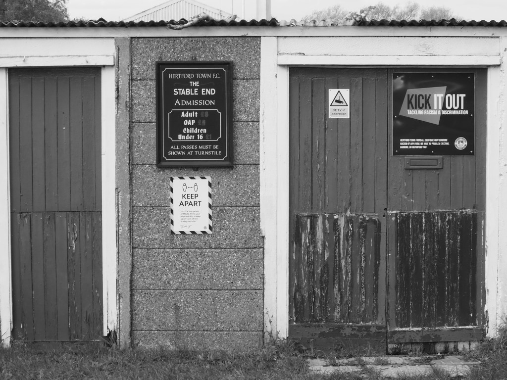The last couple of hundred yards of the Mimram take it behind Hertford Town FC’s ground. With the Mimram to the back and the Lea running down one side, you wonder about the state of the pitch in wet weather.