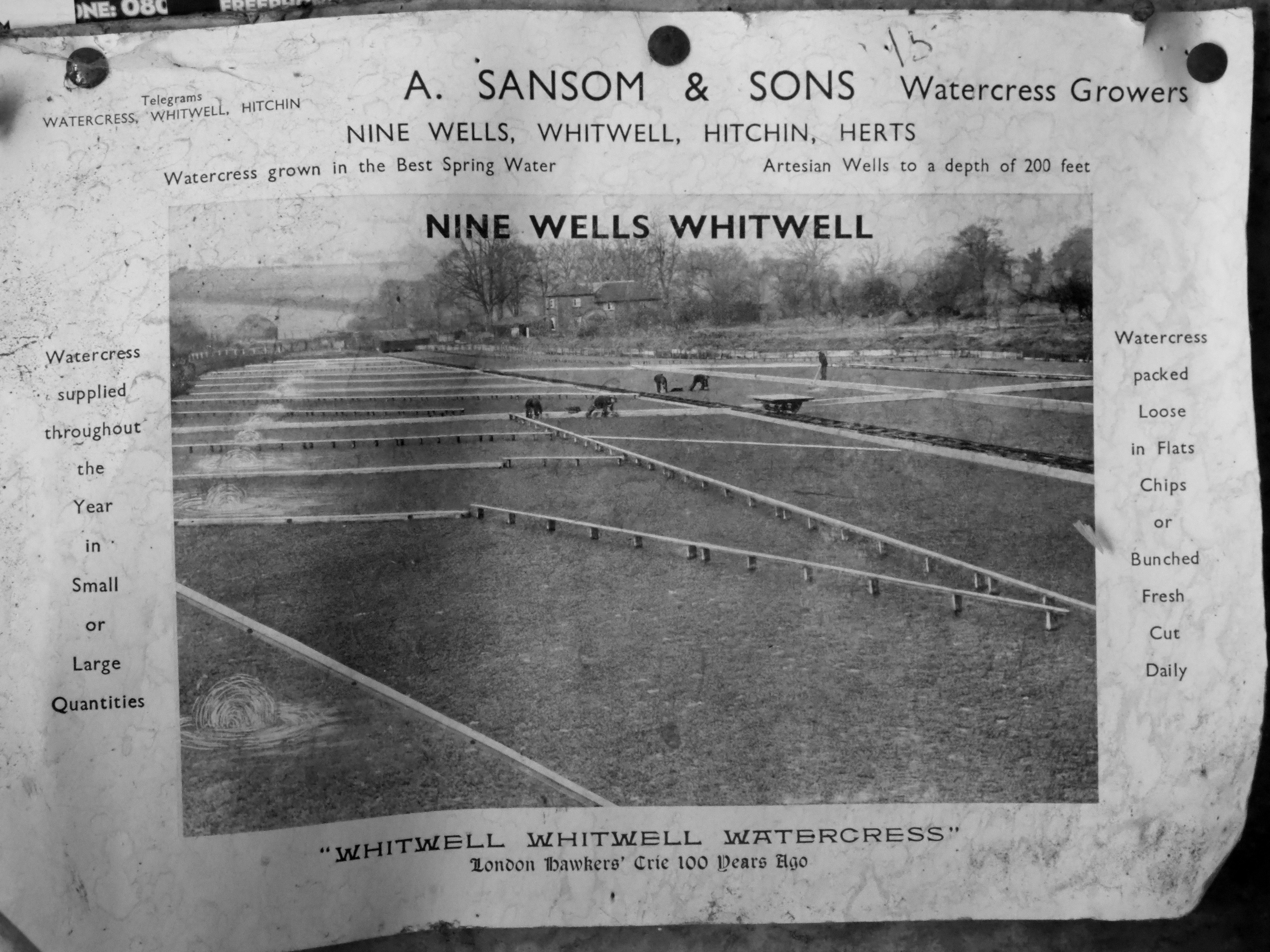 By the time the course crosses under the road at Nine Wells the water is (generally) flowing, providing the pure, running feed needed for growing water cress. The water cress farm was on its last legs in the summer of 2020, the proprietors in their 80s and the takings so meagre that nobody has wanted to take over the enterprise. The river flow has slowed and the cost of pumping from the wells is prohibitive. The last water cress farm in Hertfordshire and neighbouring counties was about to fail. Like straw plaiting, another local industry is passing into history. The ponds will silt up, their banks will subside, the unique rail track will rust and rot. One of the proprietors said to me: “So many people say ‘what a shame’. And I ask them, ‘how often did you come to buy water cress?’ and they answer ‘every couple of years’ and that says it all.”