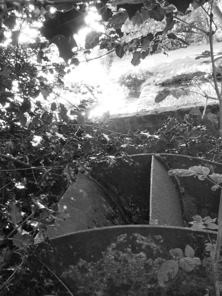 And on the northern bank, next to the weir, shielded by nettles and brambles and holly bushes is a pump that drove water up to the Marden Hill mansion on the ridge above.